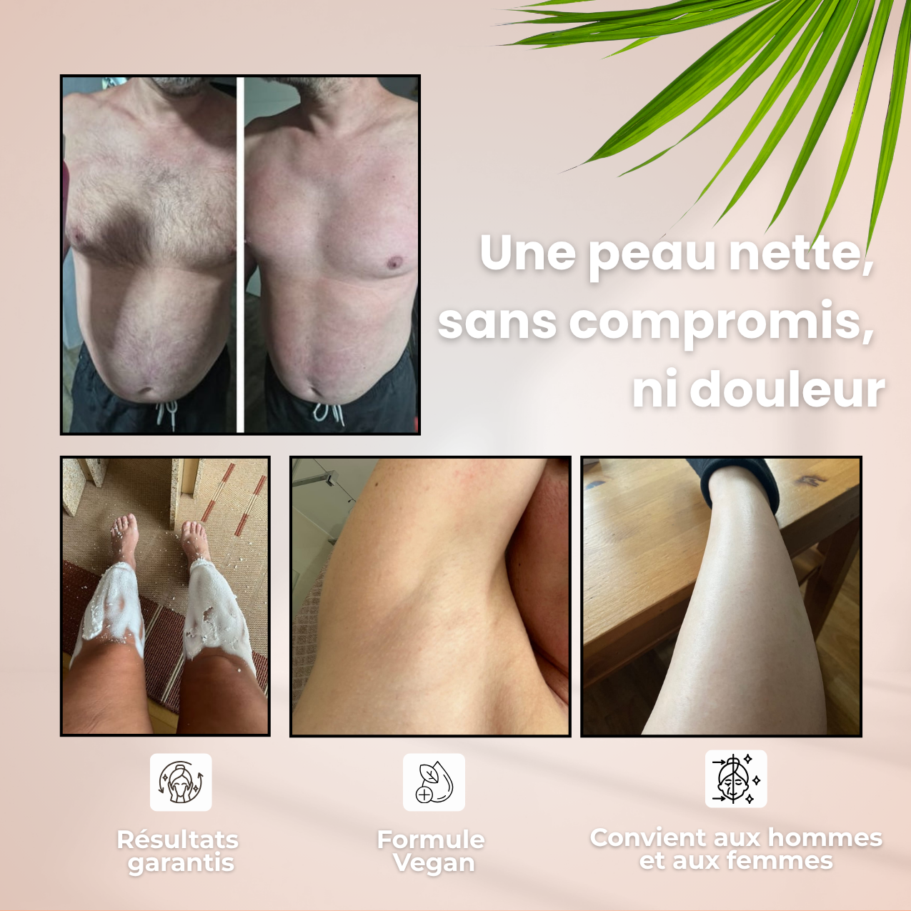 💨 En seulement 10 minutes, elle élimine les poils sur toutes les zones du corps. Obtiens enfin cette peau douce, lisse, et soyeuse que tu mérites – et retrouve confiance en toi, naturellement.