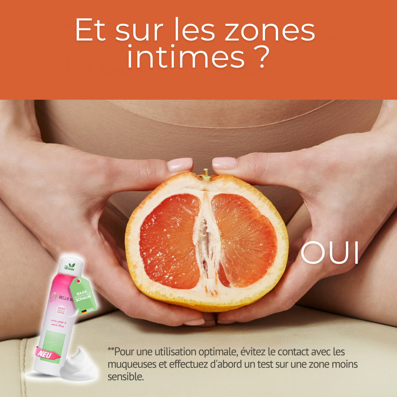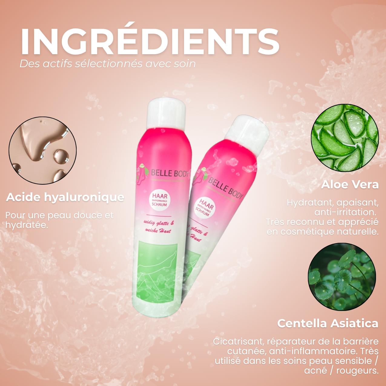 En bonus : la mousse Belle Body ralentit la repousse – les poils repoussent plus fins et moins nombreux, sans douleur.